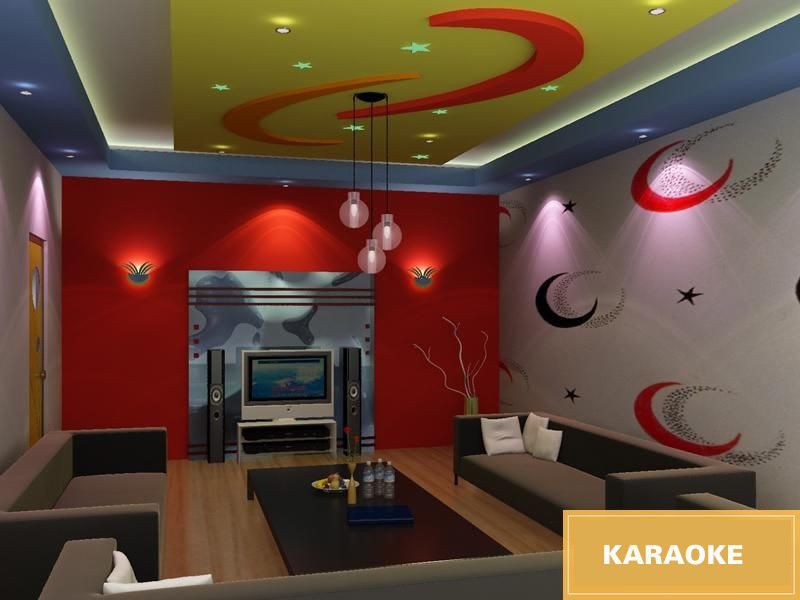 Đối với những nội thất có trong phòng hát bạn nhất thiết cần sắm bộ bàn ghế salon, dạng ghế dài, chiếc bàn nhỏ để tiết kiệm không gian, ngoài ra còn có các vật trang trí khác. Về hệ thống âm thanh, ánh sáng cũng là yếu tố quan trọng làm nên giá trị phòng hát của gia đình bạn. Bạn cần sắm một chiếc tivi, chiếc điều hòa bởi phòng hát kín cách âm nên chiếc điều hòa cũng là rất cần thiết, nếu diện tích phòng karaoke gia đình bạn từ 20m2 trở lên, thì để phục vụ tốt nhất cho nhu cầu giải trí ca hát thì tối thiểu phải có 4 loa và được bố trí theo kiểu 2 loa chính treo phía trước và 2 loa phụ treo phía sau thì mới đảm bảo sự mượt mà, hưng phấn qua những lời ca tiếng hát.