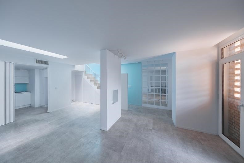 Đi lên phía trên tum là hệ thống từ cầu thang thoải, gia chủ sử dụng cho ngôi nhà với 2 phòng ngủ. Màu trắng tổng thể được đối lập với gam màu xanh nhạt từ phía đối diện một cách phù hợp. Qua các góc chụp quý khách có thể thấy được sự hiện đại mà nhà ống mang đến cho kiến trúc một bộ mặt hoàn toàn mới lạ đúng không nào ! Đó là sự kết hợp giữa cái mới và cái cũ, nét tương phản đối lập từ sự tao nhã tinh tế mà ai cũng có thể dễ dàng say đắm khi bước chân vào ngôi nhà.