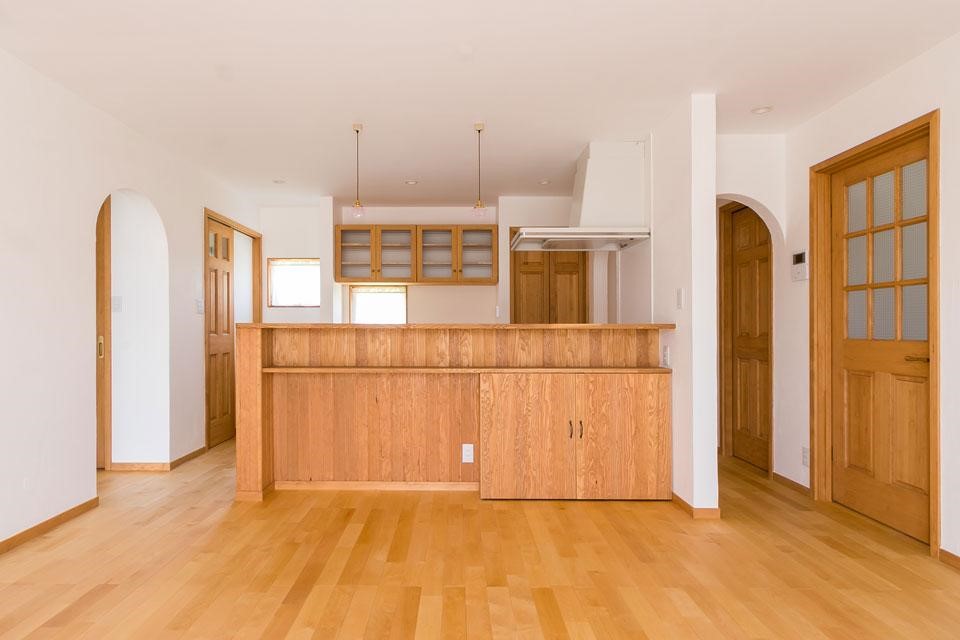 Gam màu trắng bên trong ngôi nhà lại là một sự tương phản độc đáo cho hệ thống nội thất được gia chủ cố tình sắp xếp từ màu sắc của gỗ tự nhiên. Hệ thống lót sàn, tủ gỗ, quầy bar, cửa phòng sử dụng mang đến nét đồng nhất. Không gian mới được hoàn công nên vẫn chưa được trang trí nhiều từ vật dụng nội thất, nhưng nếu kết hợp với bộ ghế, tranh ảnh, kệ treo hay hệ thống đèn chiếu sáng chắc chắn sẽ mang lại sự trọn vẹn hơn rất nhiều cho ngôi nhà.