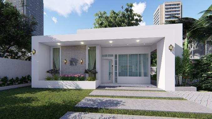 Phối cảnh hiện lên thông qua sắc thái tối giản từ các đường nét trang trí, dựa trên sự phối hợp nhịp nhàng mà đã làm nên một mặt tiền làm mọi người mãn nhãn. Giá trị còn thể hiện từ không gian tổng quan từ hệ sinh thái từ sân vườn mang đến cảm giác thư thái, hiện diện ở mọi góc cạnh một trong những đặc trưng nổi bật mà mọi gia đình vẫn luôn mong muốn sở hữu. Đây là góc chụp thứ nhất dựa trên phần sân vườn phía sau ngôi nhà mà chúng đã thể hiện rõ nét điều mà chủ đầu tư đã hướng đến như nhấn mạnh giá trị mà chúng đã làm nên bằng sắc thái hoàn toàn riêng biệt.