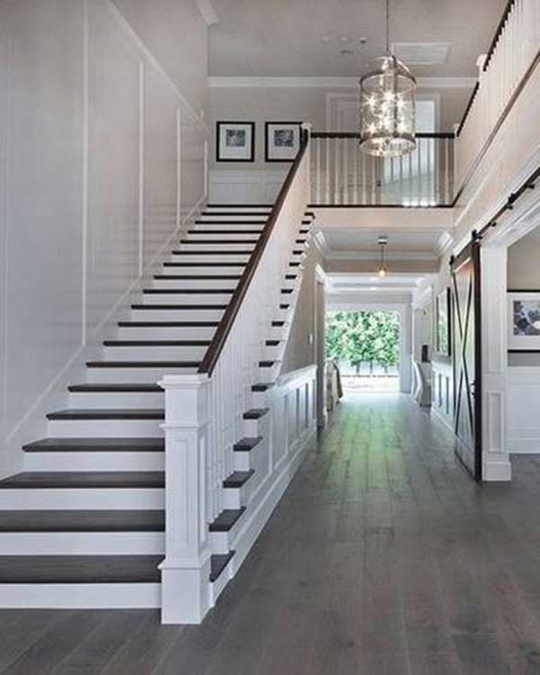 Với những ngôi nhà ống có thiết kế đơn giản, mẫu cầu thang chữ I này sẽ là sự lựa chọn hoàn hảo cho ngôi nhà của bạn. Sử dụng gam màu đen trắng phổ biến nhưng không bao giờ lỗi thời sẽ giúp cho không gian của bạn luôn giữ được vẻ đẹp hiện đại, đồng thời gam màu trắng cũng là lựa chọn cho những không gian có diện tích nhỏ, nó mang lại cảm giác rộng và thoáng hơn cho ngôi nhà. Bậc cầu thang và tay vịn sử dụng chất liệu gỗ tạo nên vẻ đẹp tinh tế và cao cấp cho không gian.