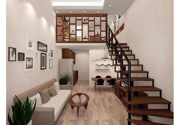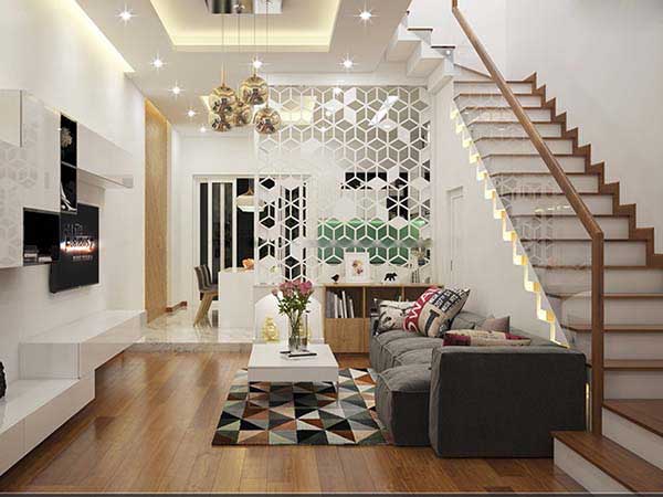 Mang một không khí ấm áp, nhẹ nhàng mà hiện đại, không gian ngôi nhà này hoàn toàn là lựa chọn tuyệt vời cho gia đình nhỏ của bạn. Cầu thang hình chữ I được thiết kế sát tường mang đến sự gọn gàng, bậc cầu thang bằng gỗ, tay vịn bằng kim loại tạo sự thông thoáng cho ngôi nhà. Màu sắc kết hợp linh hoạt cùng với nội thất chắc chắn sẽ giúp bạn hài lòng. Các không gian được thiết kế mở, liên kết với nhau nên cho dù diện tích không quá lớn, bạn cũng không cảm thấy chật hẹp hay khó chịu.