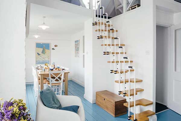 Nếu bạn sở hữu một căn nhà với diện tích hạn chế, hãy lựa chọn mẫu cầu thang chữ I này cho không gian của mình. Nó sẽ giúp bạn tiết kiệm được diện tích một cách tối đa trong khi vẫn kết nối được mọi không gian trong ngôi nhà. Cầu thang kết hợp với tủ gỗ và tay vịn kim loại gắn trực tiếp trên tường tạo thành những đường nét đơn giản, dứt khoát mà tiện ích.