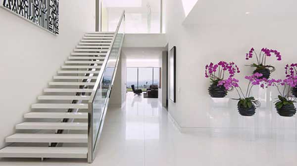 Mẫu cầu thang chữ I này sử dụng gam màu trắng đồng màu với kiến trúc, nó tạo ra một không gian đẹp và hiện đại. Cùng với đó, bậc cầu thang được thiết kế đơn giản với phần tay vịn chắc chắn, đảm bảo sự an toàn của mọi người trong quá trình di chuyển. Bạn có thể để dưới gầm cầu thang những bức tranh lớn để trang trí cũng là một cách tạo nên sự sinh động cho ngôi nhà.