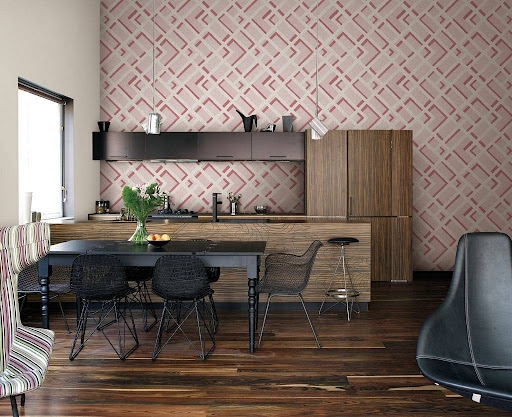 Bếp là nơi quan trọng trong một ngôi nhà, nên ưu tiên những mẫu giấy dán tường màu sắc sáng sủa sẽ làm khu vực này bắt mắt hơn. Bạn có thể lựa chọn những phong cách giấy dán tường liên quan đến ẩm thực để tăng nguồn cảm hứng khi chế biến các món ăn cho cả gia đình nhé.
