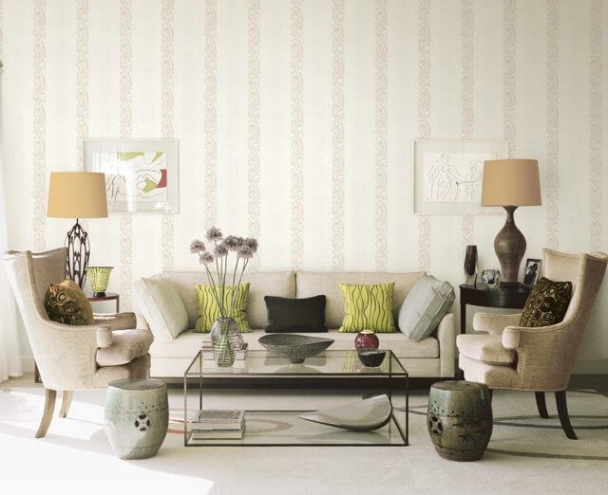 Là nơi tiếp đón các vị khách quý đến chơi, chọn loại giấy dán tường đẹp mắt sẽ góp phần tăng nét sang trọng cho phòng khách. Tại khu vực tiếp khách nên chọn những loại giấy dán tường có màu sắc sáng cùng các họa tiết đơn giản.