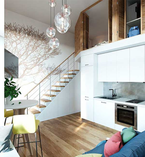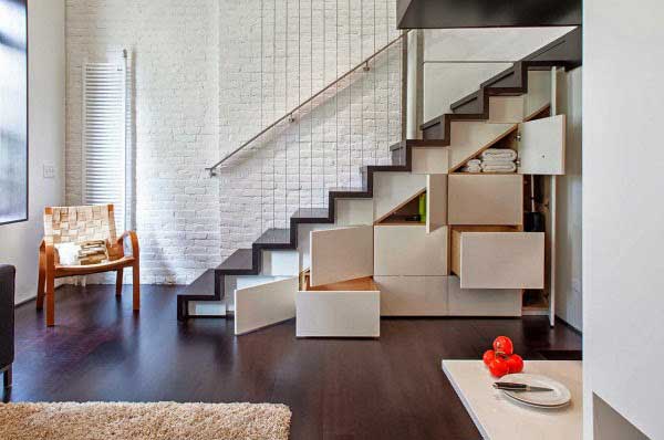 Đây thực sự là mẫu cầu thang cho nhà nhỏ hẹp mà bạn có thể lựa chọn cho không gian sống của mình, đặc biệt là những người sống một mình. Đặt vị trí cầu thang dọc theo ngôi nhà, kết nối phòng bếp với phòng ngủ giúp việc di chuyển dễ dàng hơn. Bạn có thể trang trí bức tường dọc theo cầu thang bằng một bức tranh để giúp ngôi nhà giống như một bức tranh đẹp và thu hút. Kết hợp với tủ bên dưới cầu thang sẽ là cách giúp bạn tiết kiệm tối đa diện tích cho ngôi nhà của mình.