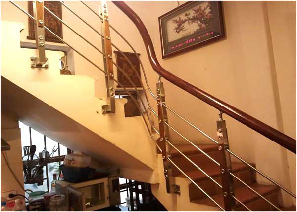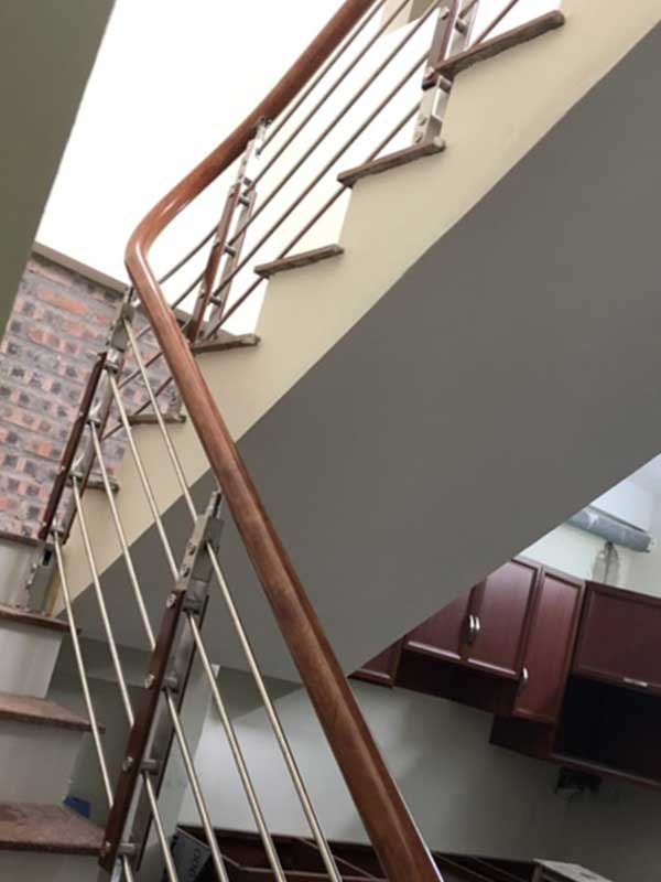Cầu thang inox tay vịn nhựa sơn 1 màu giả gỗ kết hợp cùng cầu thang ốp gỗ đem lại không gian sang trọng, lịch sự cho ngôi nhà của bạn. Hơn thế nữa chúng còn tạo cảm giác chắc chắn khi sử dụng, không hề có sự rung lắc khi tác động lực lên lan cầu thang cũng như tay vịn. Màu sơn tay vịn gần giông với màu ốp bậc cầu thang tạo nên sự đồng nhất về màu sắc trong không gian của bạn.