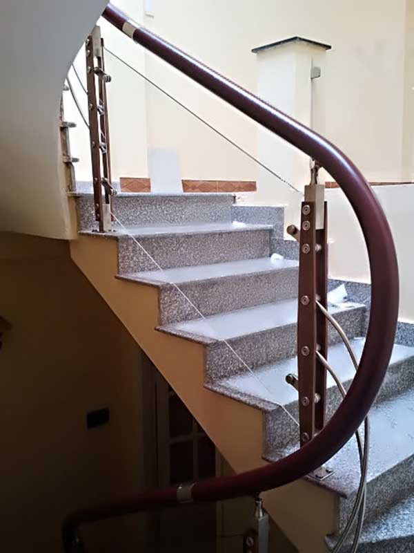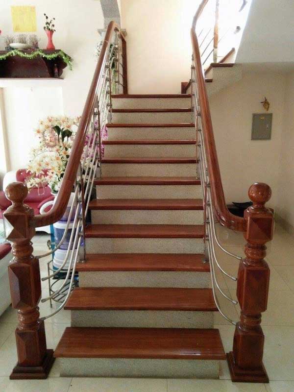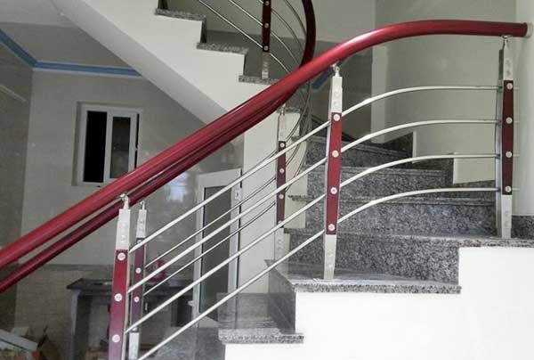 Nếu ưa thích màu đỏ của các loại gỗ như đinh, lim … hãy thử với mẫu cầu thang này nhé. Sự kế hợp với bậc ốp đá granite cũng là một ý tưởng khá ổn và được áp dụng trong nhiều công trình đặc biệt là công trình nhà ở hay các căn nhà có không gian hẹp. Những khúc cong hay phần uốn lượn của cầu thang đều không làm khó được với phần tay vịn nhựa bởi tính chất dẻo, dễ uốn cong hay định hình của nhựa. Cầu thang inox tay vịn nhựa là sự lựa chọn hoàn hảo cho những không gian hẹp, độ dốc cầu thang lớn và những khúc uốn khó, giúp tiết kiệm được chi phí hi công, lắp đặt cũng như thời gian thi công.