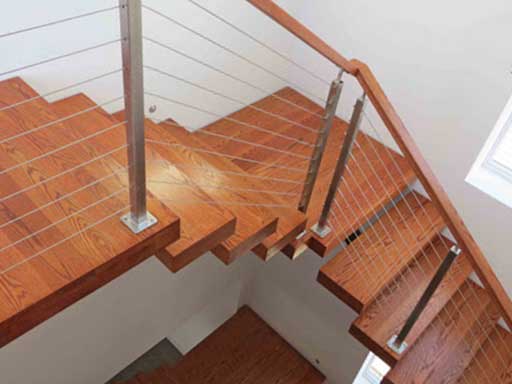 Nếu là một nghệ sĩ yêu thích cây đàn ghita hay chỉ đơn giản là yêu thích những dây đàn phát ra những âm thanh tuyệt vời thì đây quả là một gợi ý thú vị. Sự kết hợp hài hòa giữa gỗ ốp cầu thang – lan can cầu thang inox- tay vịn cầu thang nhựa tạo nên một điểm nhấn tuyệt vời cho căn nhà. Vẫn là thiết kế đơn giản nhưng nó mang màu sắc của thiên nhiên, của ngệ thuật. Và nếu gia đình có con nhỏ thì hãy yên tâm cho bạn nhỏ khi chơi đùa trên các bậc cầu thang của gia đình nhé.