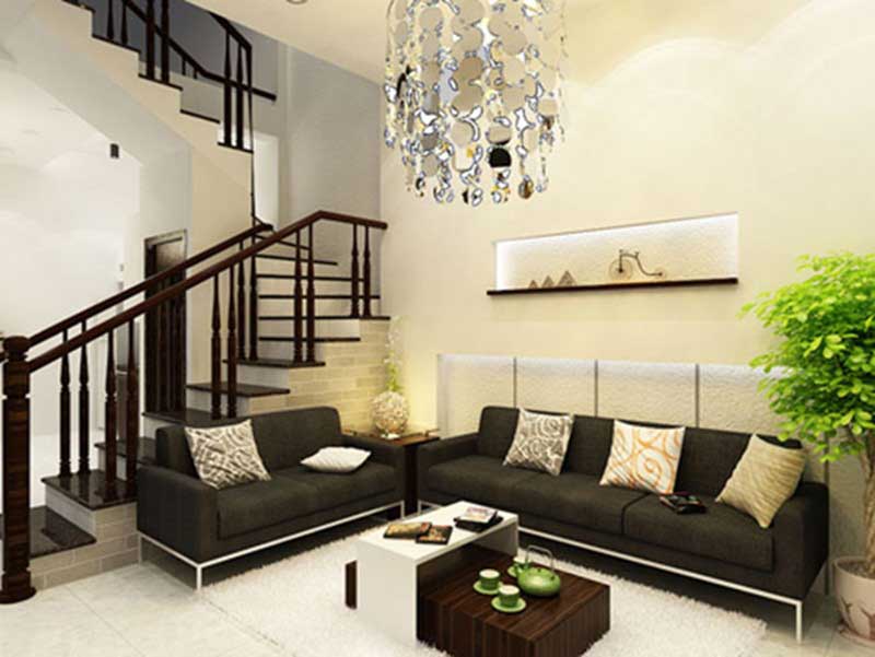 Với đặc thù của nhà ống, bạn cần một con mắt thẩm mỹ coa để làm sao sắp xếp trang trí phòng khách hợp lý. Theo quan niệm phong thủy, bạn nên đặt ghế sofa gần cửa chính để đón tài lộc vào nhà, cũng là để tạo một không gian thoang mát, đón ánh nắng, khí trời làm vượng khí của gia chủ tăng lên. Trong trường hợp phòng khách gần hành lang, bạn luôn phải giữ hành lang ngăn nắp sạch sẽ. Phòng khách trên cầu thang rất đơn giản bởi không gian chật hẹp nhưng nhờ cách bài trí nội thất phù hợp, thêm một vài tiểu cảnh xanh xung quanh đã làm không gian trở nên sống động hơn rất nhiều.