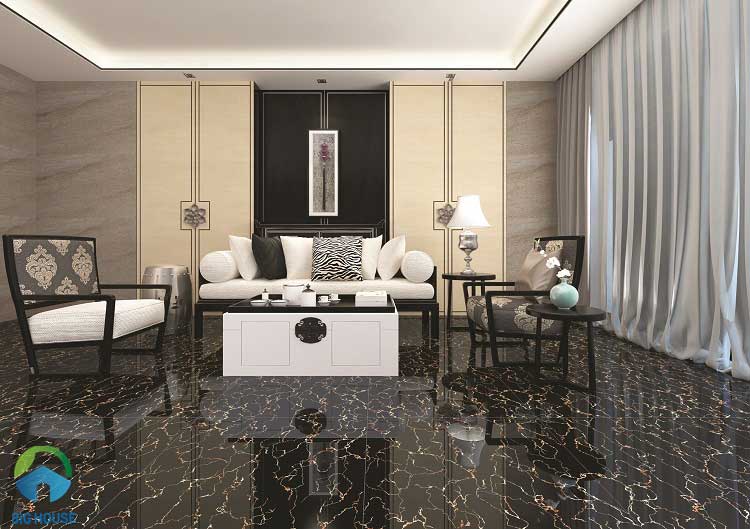 Một mẫu gạch lát nền màu đen đẹp đã và đang thống lĩnh thị trường gạch lát nền đó là mẫu gạch giả đá màu đen với vân đá màu cẩm thạch. Mẫu gạch này tưởng chừng thích hợp với nhiều không gian nhưng thực chất nó thích hợp với những ngôi nhà có không gian rộng. Mẫu gạch này mang đến cho căn phòng của bạn nét hiện đại, sang trọng, đẳng cấp mà không mẫu gạch nào làm được.