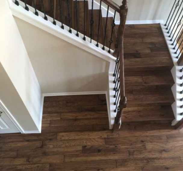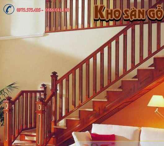 Đây là cầu thang được là từ gỗ công nghiệp, các bạn có thể thấy màu sắc, kiểu dáng của nó khác hẳn với loại gỗ tự nhiên.