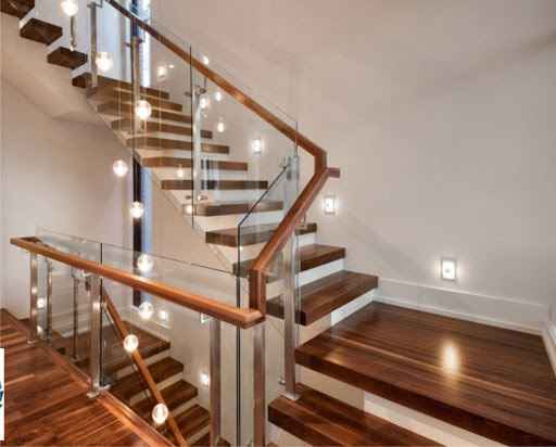 Đây là mẫu cầu thang gỗ có lan can toàn bộ bằng kính trong suốt. Việc kết hợp giữa kính và gỗ này giúp ngôi nhà của chúng ta thêm phần trắng sáng hơn. Đây là mẫu lan can với tay vịn, mặt bậc được làm bằng gỗ kết hợp thành lan can làm từ kính trong suốt. Mặt bậc được làm từ gỗ nguyên khối có thể thấy là rất chắc chắn thêm vào đó là lan can kính có gắn đèn càng làm cho cầu thang của mình thêm sang trọng hơn .