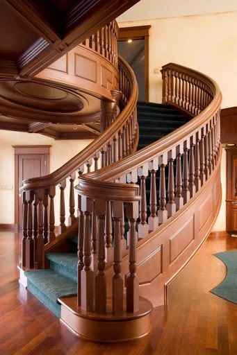 Sau cùng tôi xin giới thiệu tiếp cho các bạn một mẫu cầu thang gỗ tự nhiên mà khi thấy nó các bạn chỉ có thể mê đắm. Đây mẫu lan can đẹp mang đầy đủ vẻ đẹp của loại gỗ lim nam phi. Nhìn vào hình ảnh này các bạn thấy sao có phải là một kiệt tác không ạ ? Lan can cầu thang này được làm rất chắc chắn bởi những trụ gỗ to theo đường cong đều nhau. Bên trên các trụ gỗ là hình ảnh đường cong mềm mại của tay vịn. Phía dưới cùng là mặt bậc thang từng bậc to nối tiếp nhau tạo lên một lối đi vô cùng sang trọng. Vậy nên các bạn hãy xem và chọn cho mình những mẫu lan can cầu thang gỗ đẹp để phù hợp cho ngôi nhà của mình .