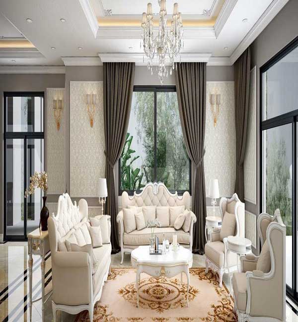 Vẫn là phong cách tân cổ điển nhưng có lẽ chúng ta không ai giám khẳng định rằng mẫu thiết kế nào đẹp hơn vì nó “mười phân vẹn mười”. Mỗi phòng khách lại có một vẻ đẹp riêng mặc dù cùng một phong cách. Ở mẫu thiết kế này chúng ta thấy có sự kết hợp hài hòa bởi cách bố trí, sắp xếp. Nội thất trong căn phòng được lựa chọn tinh tế, sắc sảo. Có lẽ khi sở hữu căn phòng này khi đi đâu trở về nhà có lẽ là nơi bình an, êm đềm nhất.