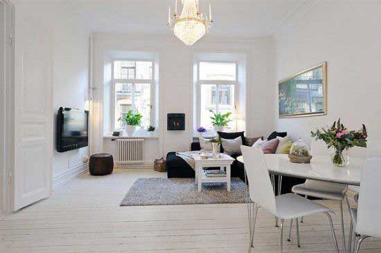 Diện tích không gian này cũng là một nỗi khó đối với các gia chủ, hãy chọn cho mình những bộ nội thất với kiểu dáng và thiết kế nhỏ gọn tạo nên sự tao nhã, lịch sự cho cái nhìn đầu tiên. Chúng tôi khuyến khích các bạn sử dụng những chi tiết sáng tạo cho căn phòng như tranh treo tường, đèn treo trần, hay những vật dụng như kệ sách, tivi để tận dụng tối đa những khoảng trống làm không gian trở nên sang trọng và đầy đủ tiện nghi. Lưu ý, tránh làm rối mắt với quá nhiều chi tiết không cần thiết sẽ làm căn phòng trở thành ”thảm họa”.