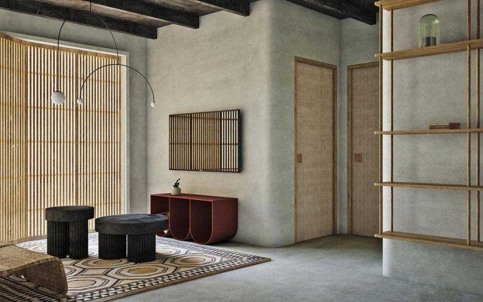Cuối cùng là một mẫu thiết kế khác hoàn toàn với hình dung của bạn khi thiết kế phòng khách nói chung và phòng khách cho loại nhà ống 3m nói riêng. Không có bộ sofa, bàn trà, kệ TV thường thấy mà là những thiết kế phóng khoáng hơn rất nhiều và khác xa chuẩn mực thông thường. Phong cách tối giản của mẫu thiết kế này mang hơi hướng Nhật Bản mà qua màu sắc và kiểu dáng có thể dễ dàng nhận thấy. Tất nhiên không gian của căn phòng không những được mở rộng mà còn trở nên vô cùng rộng rãi, thoải mái. Nếu bạn là người tự tin, dám thử sức với những điều mới mẻ thì chắc chắn đây là sự lựa chọn của bạn.
