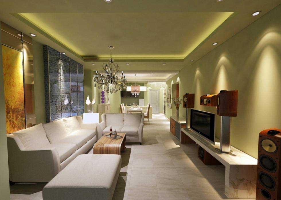 Một mẫu gợi ý mang phong cách thiết kế tân cổ điển khác cho phòng khách nhà ống 3m vuông. Khi lựa chọn trang trí theo phong cách nào thì bạn cũng cần tiết chế kích thước và họa tiết của đồ nội thất tránh làm không gian thêm bức bách, khó chịu. Với phong cách tân cổ điển của mẫu thiết kế này, họa tiết để làm nên đặc trưng cho phong cách này cũng được lựa chọn hết sức đơn giản và tinh tế, đó là chiếc đèn chùm bằng thủy tinh và hoa văn của gối tựa. Kết hợp với tone màu trắng chủ đạo thì phong cách tân cổ điển đã được tái hiện thành công.