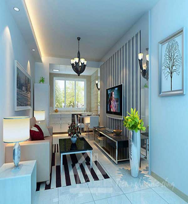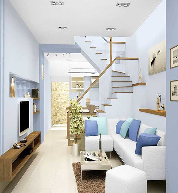 Khi thiết kế phòng khách bạn cần hạn chế tối đa nội thất to chiếm nhiều diện tích. Mà chủ yếu hướng tới các nội thất thông minh nhỏ gọn nhưng tiện ích. Tối ưu hóa công năng sử dụng và mang tính thẩm mỹ cao. Với chiều ngang nhỏ hẹp chỉ 4m bạn hạn chế càng nhiều nội thất rườm rà càng giúp căn phòng thông thoáng rộng rãi hơn.