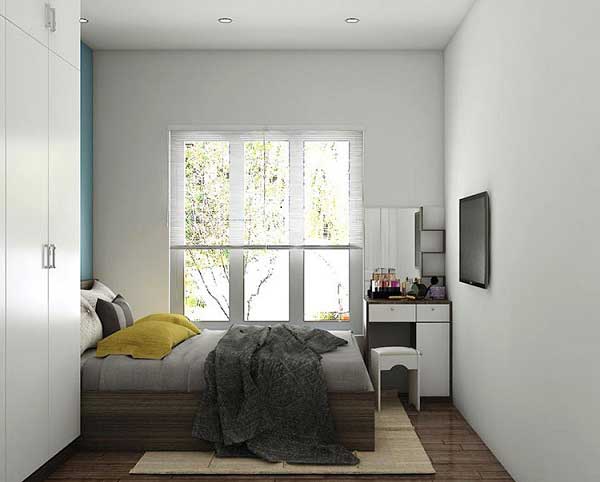 Với những phòng ngủ có diện tích khiêm tốn 11m2 thì nên sử dụng những gam màu trắng sang hay trung tính giúp cho không gian rộng rãi và thoáng mát hơn, những gam này sẽ không gây nên cảm giác bí bách và nặng nề. Mẫu phòng ngủ 11m2 này nên sử dụng những mẫu tủ đứng cao lên trần nhằm tối đa không gian sử dụng của tủ. Tất cả những màu sắc của ga gối hay tủ trang điểm cũng cần đơn giản nhất để khiến cho không gian phòng ko trở nên rối mắt và chật chội.