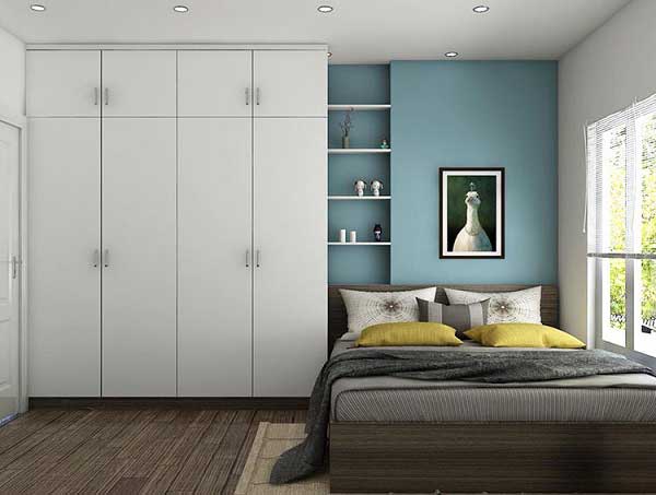 Những kệ sách nhỏ hay kệ để đồ trên tường là một sự lựa chọn hoàn hảo cho mẫu phòng ngủ 11m2, chủ nhân của căn phòng không nên sử dụng những vật dụng cồng kềnh, rườm rà mà thay vào đó là các đồ nội thất có tính chất đồng bộ về màu sắc và chất liệu. Màu sơn của căn phòng hẹp cùng là điểm cần chú ý, chủ nhân= căn phòng nên dùng tông màu sáng, trắng hay như bố trí thêm gương vừa tiện lợi lạ tạo cảm giác thoáng đãng.