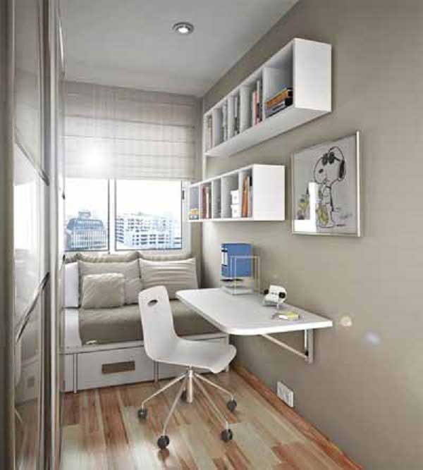 Một căn phòng ngủ nhỏ nhưng có quá nhiều đồ lặt vặt thì chủ nhân nên dùng loại giường có nhiều ngăn kéo bên dưới, hay như một chiếc tủ đứng kê sát tường có chứa góc học tập, hoặc bà trang điểm có thể kết hợp làm bàn làm việc.