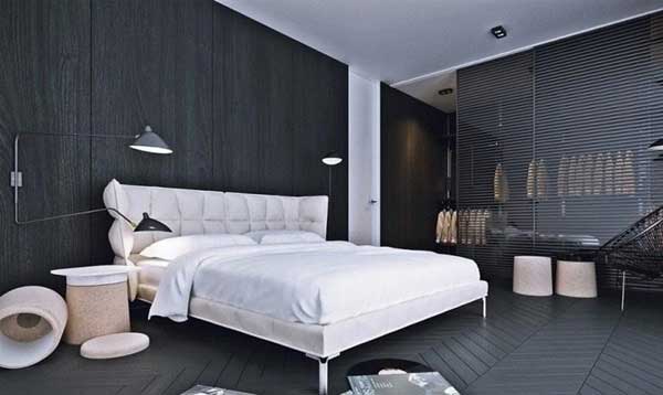 Nếu mẫu đầu tiên dành cho một quý cô tao nhã, nhẹ nhàng thì mẫu này thể hiện sự tối giản, nội thất sử dụng nhiều chi tiết nhỏ và đơn giản tạo cảm giác rộng rãi hơn cho căn phòng. Sự kết hợp tone màu trắng – đen mang lại cảm giác ấm áp nhưng vẫn nổi bật lên chiếc giường với thiết kế lạ mắt. Phòng ngủ và gian thay đồ cách nhau bằng vách chắn có thể quan sát rõ, vừa thể hiện sự tế nhị lại không bị tách rời giữa hai khu. Mẫu nội thất này phù hợp với những cô gái có cá tính tương đối mạnh mẽ hoặc nam giới chuộng phong cách đơn giản, cuốn hút.