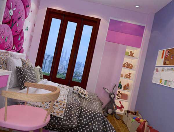 Màu hồng đậm kết hợp cùng màu cánh sen sẽ là một gợi ý thú vị cho các bậc cha mẹ đang băn khoăn không biết lựa chọn màu sắc như thế nào đối với căn phòng xinh xắn của con gái mình. Mỗi ông bố khi có một bình “rượu mơ” luôn muốn dành cho cô con gái mình những điều tuyệt vời nhất. Điều đó được thể hiện từ cách trang trí, bố trí phòng ngủ của con, màu hồng cánh sen kết hợp cùng nội thất xinh xắn sẽ giúp cho cô công chúa của gia đình bạn sẽ cảm thấy thoải mái hơn khi ở trong không gian riêng của mình. Ngoài ra bạn cũng có thể kết hợp cùng một số đồ trang trí cho bé như: thú nhồi bông màu xám, tranh treo tường, ga trải giường tối màu…. Cũng có thể làm nổi bật thêm không gian của bé và giúp các bé thêm phần thích thú.