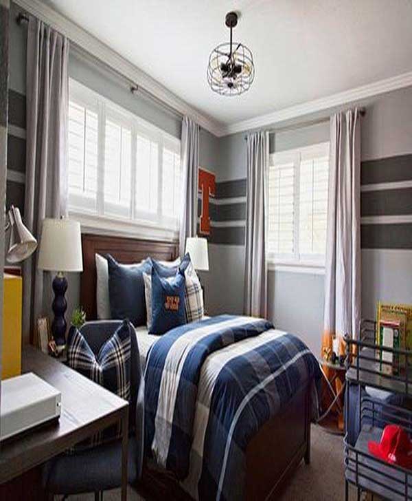 Các chàng trai yêu thể thao ơi, các bạn muốn thiết kế phòng ngủ của mình như thế nào? Hãy tham khảo mẫu thiết kế phòng ngủ trên. Bạn có thể thoải mái lựa chọn các mẫu chăn, rèm, kệ đựng đồ theo sở thích chơi thể thao của mình. Thậm chí, bạn có thể linh hoạt cả với không gian trên tường, vẽ tường/ dán tường các hình ảnh của bộ môn mà mình yêu thích.