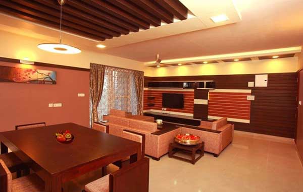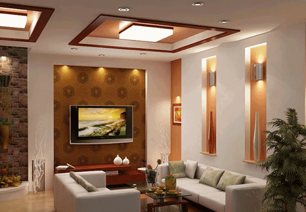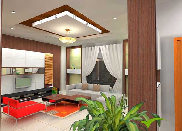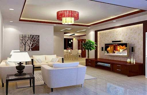 Các ngôi nhà chung cư có đặc thù là hệ trần thấp, nên việc lựa chọn trần sao cho đơn giản, giật cấp ít và tạo hình ít cầu kỳ rất phổ biến. Thay vào đó các nhà thiết kế sẽ bố trí hệ thống ánh sáng đèn hắt, đèn chùm để tạo điểm nhấn ấn tượng. Bởi vì phòng khách là bộ mặt của ngôi nhà.