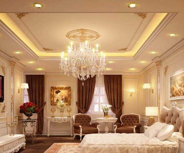 Nếu bạn muốn mỗi ngày đều thức dậy với cảm giác của một “nữ hoàng” thì đây chính là mẫu phòng ngủ mà bạn nên tham khảo. Mẫu trần thạch cao biệt thự đẹp này giúp cho phong cách cổ điển trở nên hoàn hảo hơn, thu hút hơn và độc đáo hơn. Bạn có thể tạo điểm nhấn với một bóng đèn chùm, đồng thời sử dụng ánh sáng vàng để giúp cho không gian trở nên ấm áp và lãng mạn hơn.