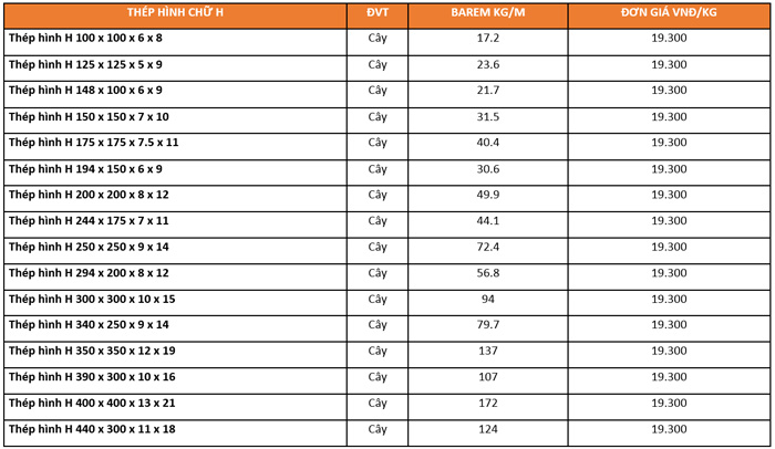 Nhờ những ưu điểm nổi bật trên mà giá sắt thép xây dựng hình H luôn là vấn đề được nhiều người quan tâm. Dưới đây sẽ là bảng báo giá chi tiết thép hình H.
