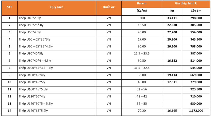 Ngoài ra, ưu điểm này, thép hình U được sử dụng phổ biến trong công nghiệp dân dụng như khung sườn xe, thùng xe,... Những sản phẩm thép hình U được mã kẽm có khả năng chống oxi hóa tốt. Sau đây là bảng báo giá thép hình U mới nhất 2024.