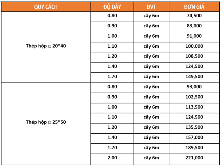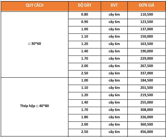 Báo giá các loại thép hộp đang sử dụng phổ biến