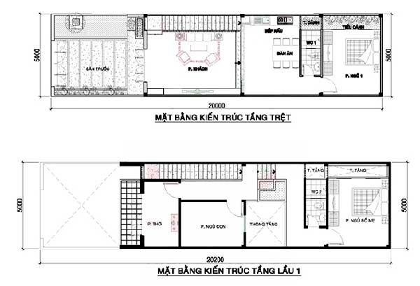 Tầng trệt được kiến trúc sư bố trí toàn bộ diện tích sàn thành gara oto để thuận tiện để phương tiện giao thông ngay trong chính ngôi nhà của mình. Phần gara oto cần đạt tiêu chuẩn tối thiểu với chiều dài là 3m. Đặt được gara oto trong ngôi nhà giúp gia chủ không phải tìm kiếm bãi đỗ xe quá xa nhà, thuận tiện cho chính gia chủ. Tại đây gia chủ bố trí một nhà vệ sinh nhỏ gọn phục vụ được nhu cầu cần thiết dành cho gia chủ sử dụng.