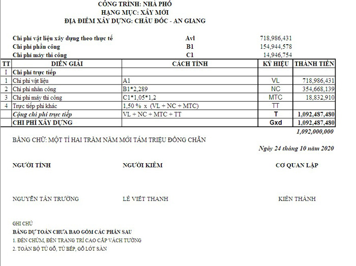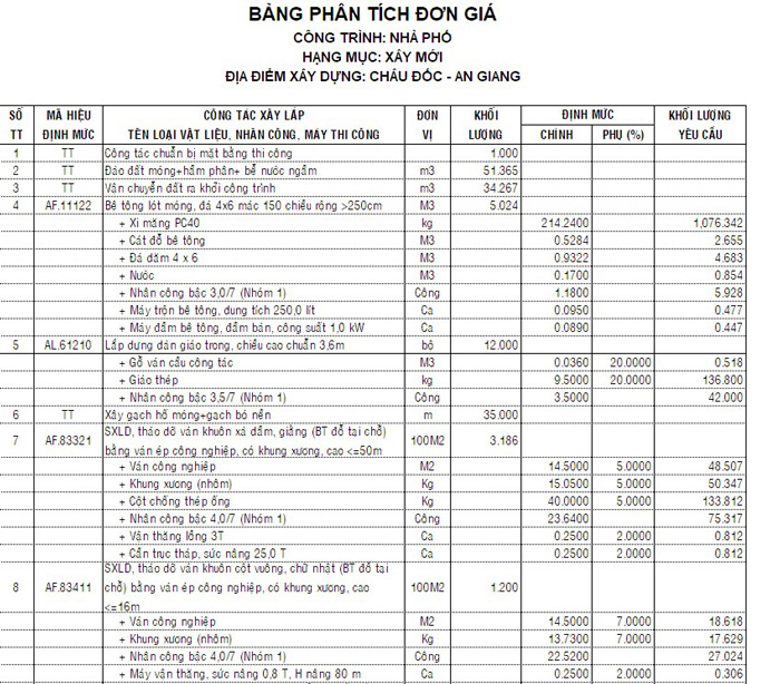 Bảng báo giá phần thô trọn gói An Giang mới nhất 2024