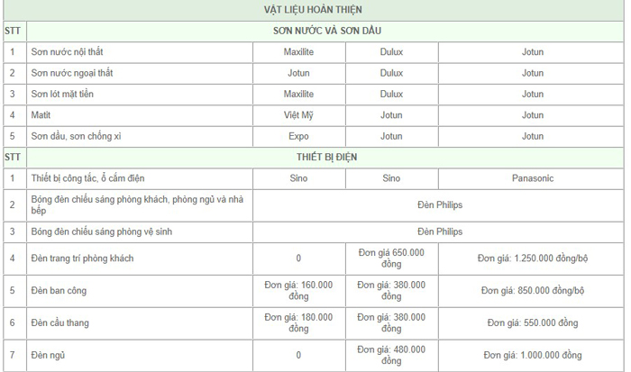 - Gói vật tư trung bình khá có chi phí khoảng 4.800.000VNĐ/m2 - 5.000.000 VNĐ/m2