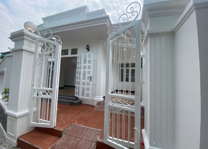 - Cổng ra vào làm bằng sắt hộp khu bao