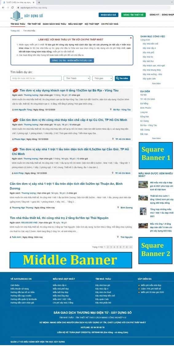 2. Quảng cáo được hiển thị tại 63 các tỉnh thành toàn quốc và các trang từ 1,2,3...trong cùng ngành nghề.