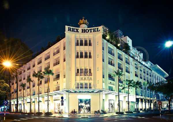 Phần cửa được đặt chính giữa mặt tiền với thiết kế cầu kì, tỉ mỉ đến từng họa tiết, hoa văn. Phần trước của khách sạn được bố trí đèn quảng cáo, bảng hiệu, tên khách sạn và có mái che lớn để giúp cho khung cảnh trở nên lung linh và huyền ảo hơn mỗi khi đêm về.