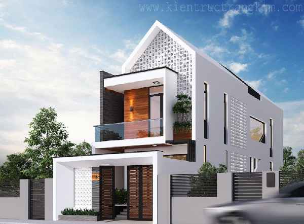 Cột trụ vuông vức cùng với lan can ban công họa tiết hoa văn khá cầu kỳ được sơn đen tĩnh điển làm nổi bật khu vực mặt tiền của ngôi nhà. Hệ thống cửa gỗ mang đến sự sang trọng cho tổng thể thiết kế, lại thêm ánh đèn vàng từ không gian bên trong càng nhấn mạnh điểm này. Tại không gian ấy được nhấn thêm cây xanh theo khung cửa sổ hay tiểu cảnh cây xanh quanh nhà giúp cho không gian ấy trở nên hài hòa hơn, thu hút ánh nhìn cảm thấy dịu mát hơn.