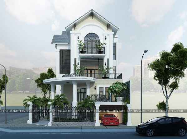 Công trình được xây dựng theo kiến trúc chữ L áp dụng mang đến diện tích không gian bên trong vô cùng thoáng rộng cho gia chủ sử dụng. Ngôi nhà này có gara oto tầng hầm giúp cho gia chủ thuận tiện trong việc để phương tiện giao thông ngay trong chính ngôi nhà của mình. Kiến trúc tân cổ điển biểu hiện rõ bằng hệ thống cột trụ tròn chắc chắn ở khu vực tầng 1 và cột trụ vuông cứng chắc ở khu vực tầng 2, 3. Khung cửa vòm kết hợp cùng với kiến trúc mái vòm cùng mái ngói mang đến vẻ đẹp đúng chuẩn phong thái cổ điển.
