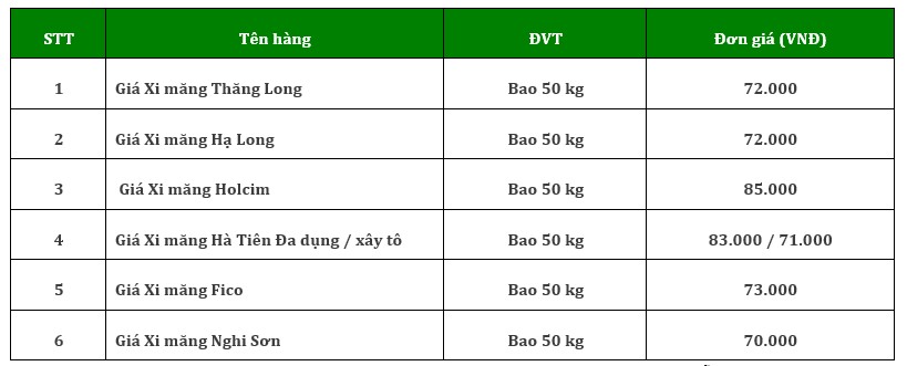 Lưu ý : Bảng báo giá xi măng này chỉ mang tính chất tham khảo tại thời điểm hiện tại. Xây dựng số sẽ nỗ lực cập nhất, báo giá giúp bạn có thể lựa chọn và tính toán cho công trình của mình.
