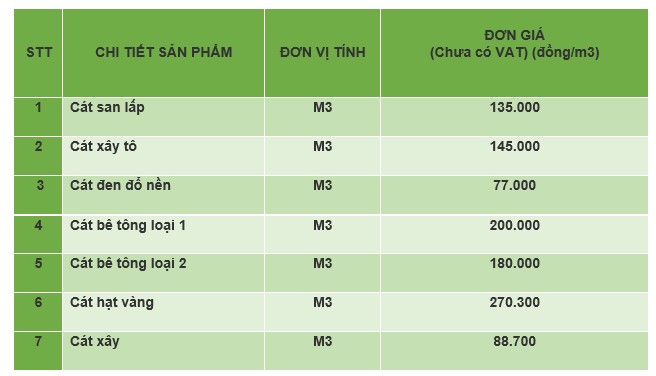 - Giá cát san lấp dao động trong khoảng 140.000đ đến 145.000đ/m3