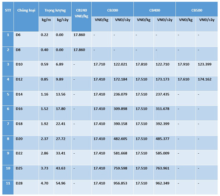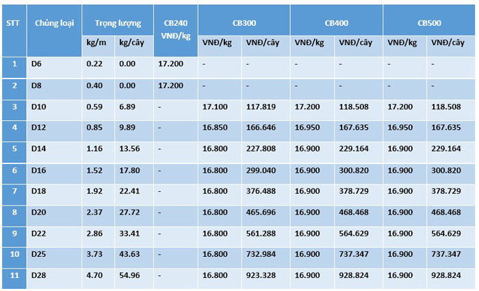 Cập nhật bảng giá vật liệu xây dựng tại Bình Thuận hôm nay với các nguyên vật liệu chính như sau: