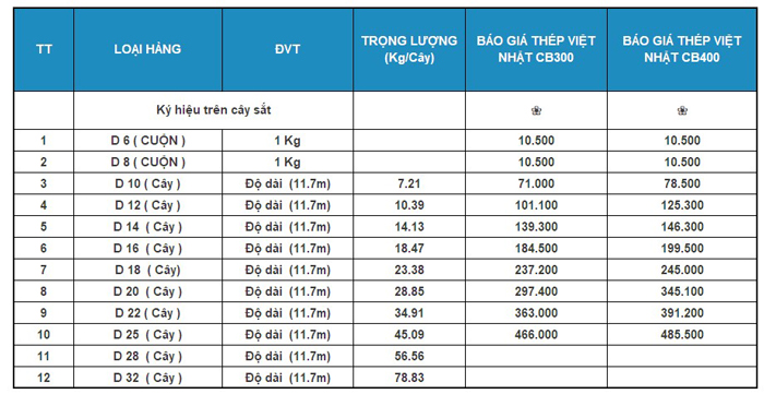 Báo Giá Thép Việt Nhật tại Cà Mau
