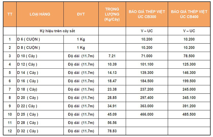 Báo giá thép Việt Úc tại Cà Mau