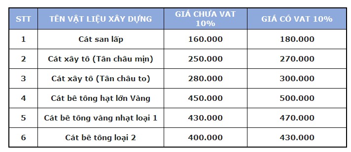 Báo giá cát xây dựng tại Cần Thơ