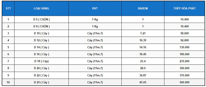 Việc sử dụng thép Hòa Phát để kiến tạo công trình của bạn thì còn gì bằng, mức giá các bạn hãy xem thêm bảng báo giá thép dưới đây nhé: